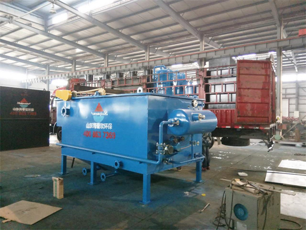 通過射流裝置將空氣壓縮機送入空氣罐的空氣帶入溶氣罐,在壓力下強制溶解在水中,形成溶氣水,送至氣浮罐。在突然釋放的情況下,溶解在水中的空氣沉淀,形成大量的微氣泡群,與泵送的絮凝污水中的懸浮物充分接觸,在緩慢上升過程中吸附在絮凝懸浮物中,降低其密度,浮到水面上,達到去除SS和CODCr的目的。
